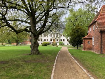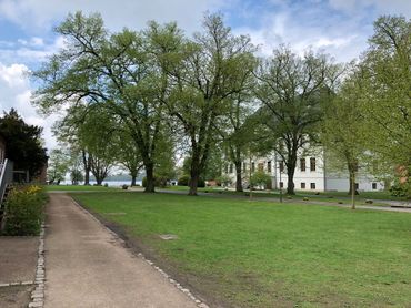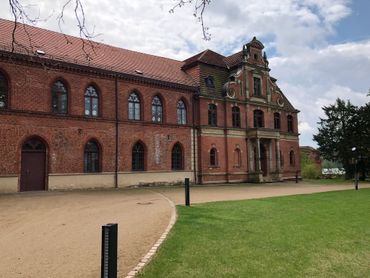 Diese Seite der KlosterAmtsScheune zeigt in den Klosterpark. Ein direkter Eingang ermöglicht es in wenigen Minuten am See zu schwimmen, im Park zu spazieren oder mit dem Rad zu fahren.